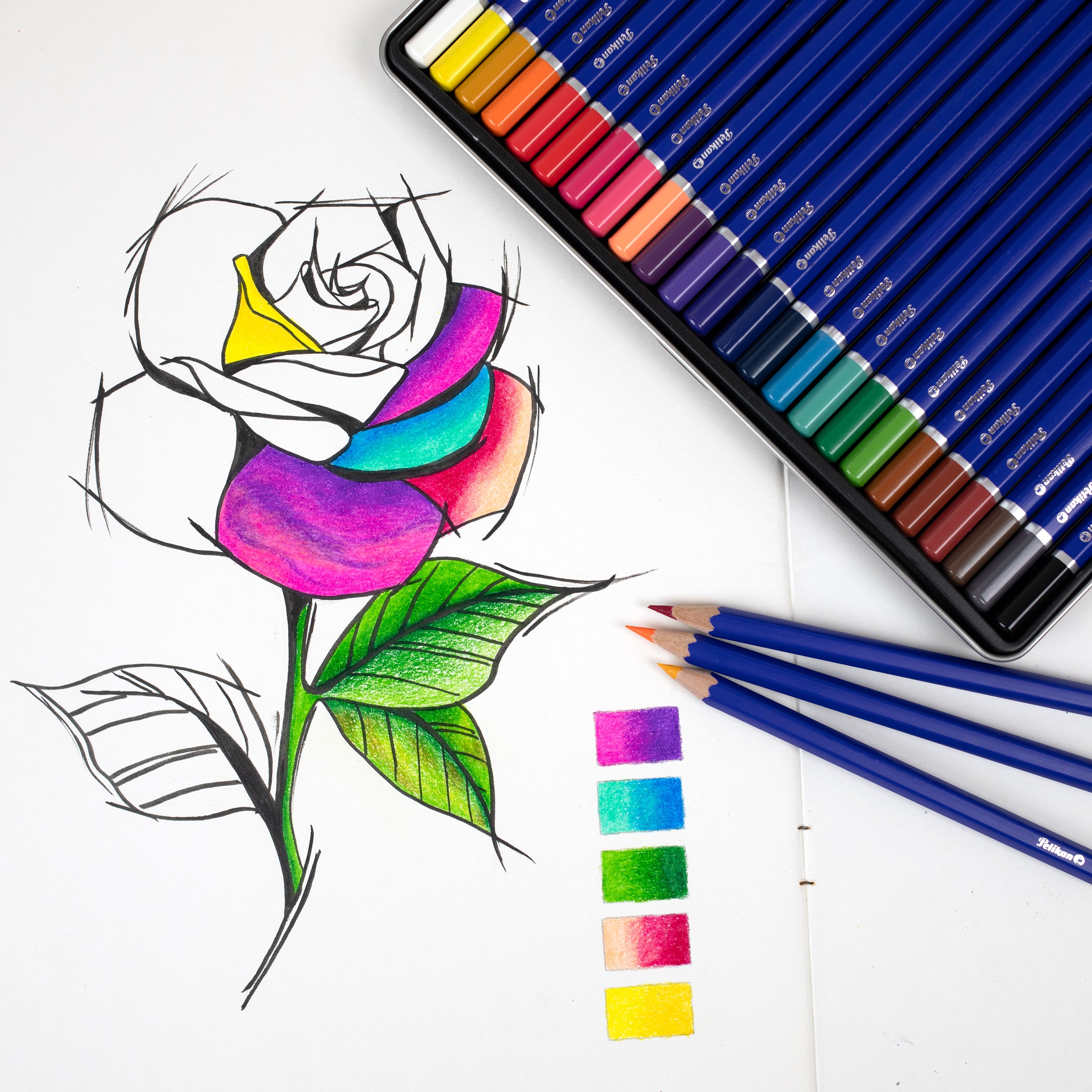 Bring your creativity to life with the Pelikan Premium Colour Pencils. This 24?colour set comes in a durable metal tin, perfect for home, school, or on-the-go use. Each pencil features a 3.3?mm thick core that delivers vibrant, strong pigments with smooth application. The high-quality leads are durable and easy to blend, making them ideal for colouring, sketching, and artistic projects.