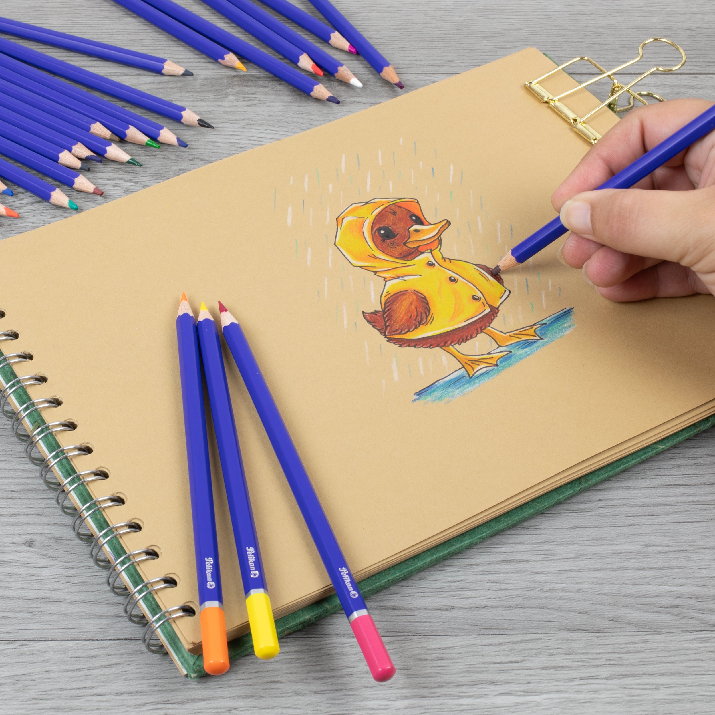 The 36 short coloured pencils by Pelikan guarantee a smooth appliance and their varnish corresponds to the colour of the lead.